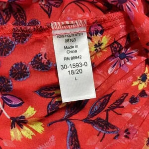 Woman Within Women L 18 20 Pleated Floral Blouse Top Red Multicolor LS Studs