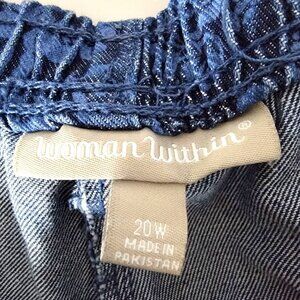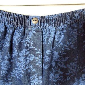 Woman Within Womens Casual Denim Pants, 20W Pull On Elastic Waist, Straight leg, Button Accent, Side Pockets Blue On Blue Floral 100% Cotton