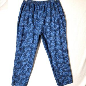 Woman Within Womens Casual Pants Sz 20W Pull On Elastic Waist Blue Floral