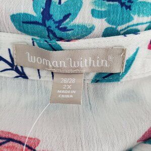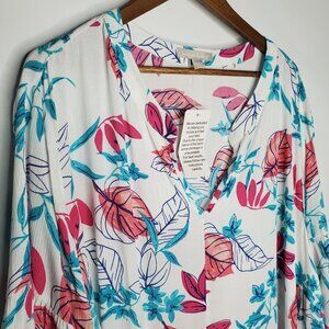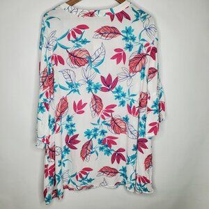 Woman Within Womens Colorful Floral Tunic Top 2X Bell Sleeve V Neck Beach Summer
