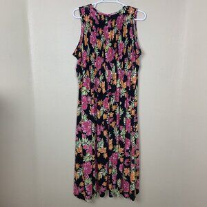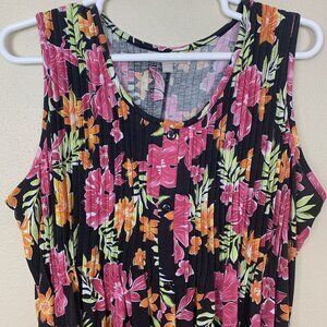 Woman Within Womens Maxi Dress 1X 22 24 Sleeveless Tropical Floral Pink Pleated