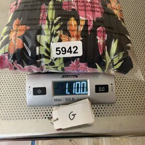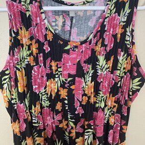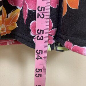 Color is black with pink and orange tropical floral print.