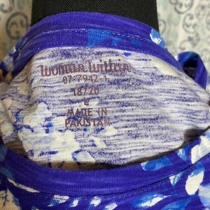 Woman Within Womens Plus Size 18/20 Blue Floral Top with Lace Sleeves