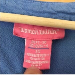 Woman Within pocket & button front lightweight gauzy blouse. Short sleeve, jewel neckline, plus size 3X. Gently used. 100% cotton.