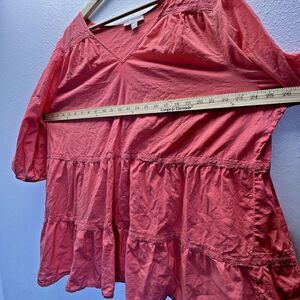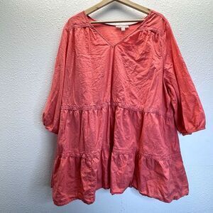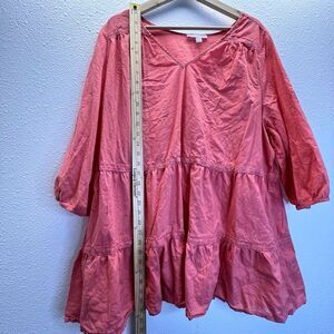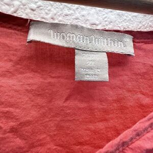 Woman Within coral Chambray Tunic Top 3/4 Sleeve casual v neck plus size 2X.