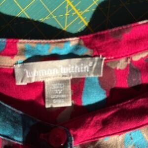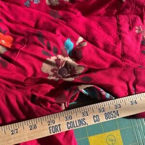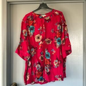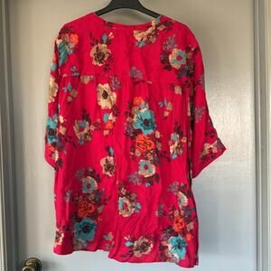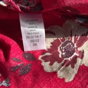 Woman Within size 3X Red Large Floral Flowers Full Front Button Top Short Sleeve