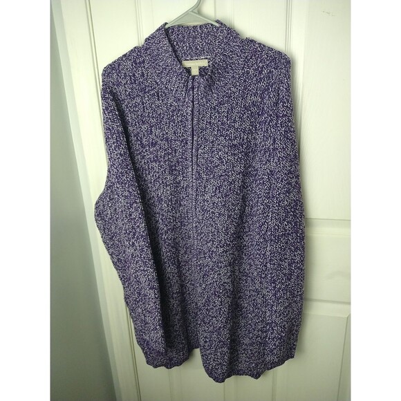 Woman Within26/28 Sweater Purple White Marbled Full Zip LS Casual Comfort Pocket