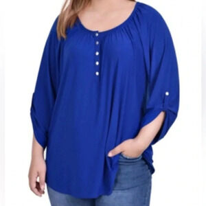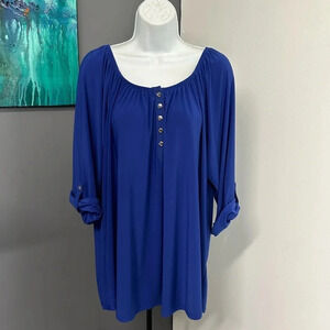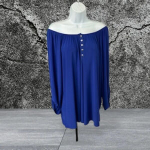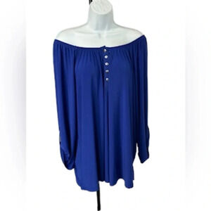 Notations Woman XL Royal Blue Popover Blouse Roll Tab Stretch Off Shoulder