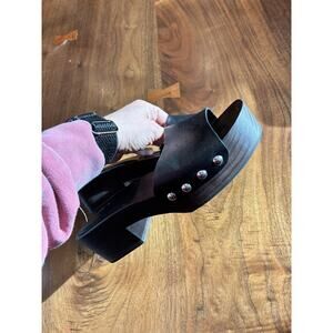 Woman Zara Clog Wooden Heeled Slip On Sandals Leather Upper Black sz 8 eur 39