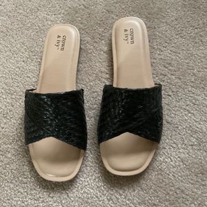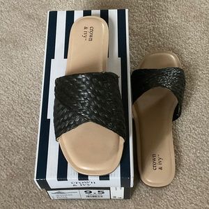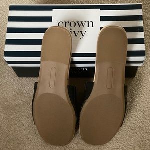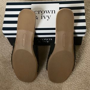 This Crown & Ivy black Patsie shoes are new. They have a basket weave design on the leather. They are dress up or dress down type of shoe.