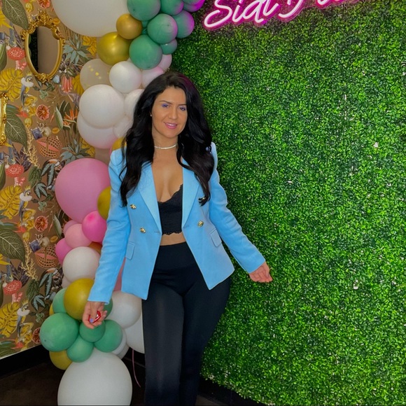 Baby blue automatic it worn just once! No brand! Items from my personal closets! It says large but if it’s nicely on a medium size