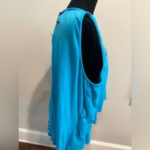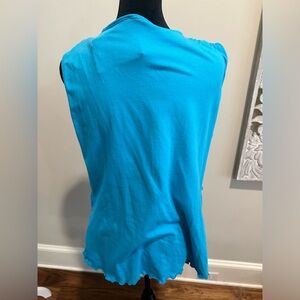 Woman turquoise top