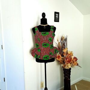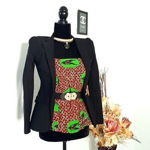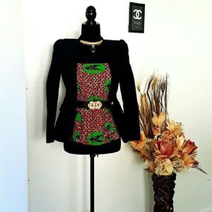 Absolutely stunning, brand new, belt doesn't come with it, and no blazer, just the African print. No flaws