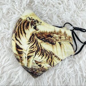 This Tiger Printed Face Mask is reusable, fully adjustable around the ears with double layered 100% Cotton/Polyester Blend fabric.