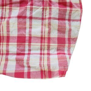 Woman Within Plaid Shirt 1X 22 24 Pink White Yellow Short Sleeve Roll Tab Check