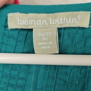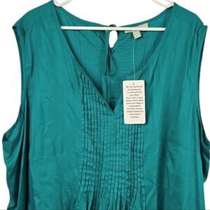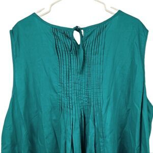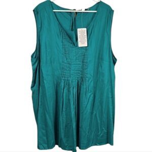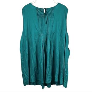 Woman Within Teal Plus Size Sleeveless Notch-Neck Tunic 3X 30/32 Pleated Blouse