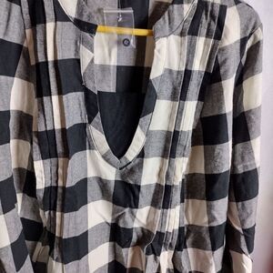 soft flannel black and white tunic with deep V neck and faux under shirt. new without tags, extra buttons still attached. pit to pit 24" length 30". OO