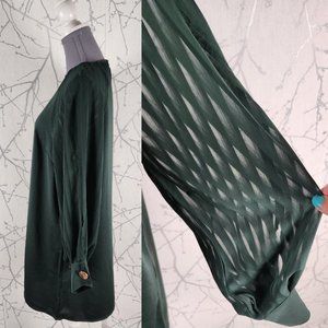 Womance Atelier Forest Green Sheer Striped Sleeve Dress