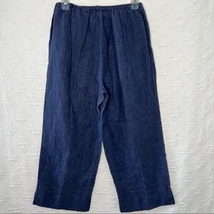 Woman's 100%Linen Straight Leg Pants . Size L. Navy
