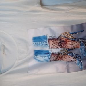 A very dazzling woman blouse with rhinestones little twist at the waist in the blouse "cream white" Never used Great condition. Dry cleaned"
