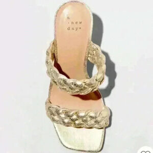 New With tags Size 6 Gold Woven Braid Gold Straps, open toe