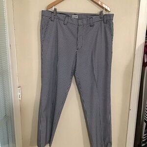 Woman’s Adidas 38×30 golf pants gingham printed blue white checkered