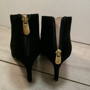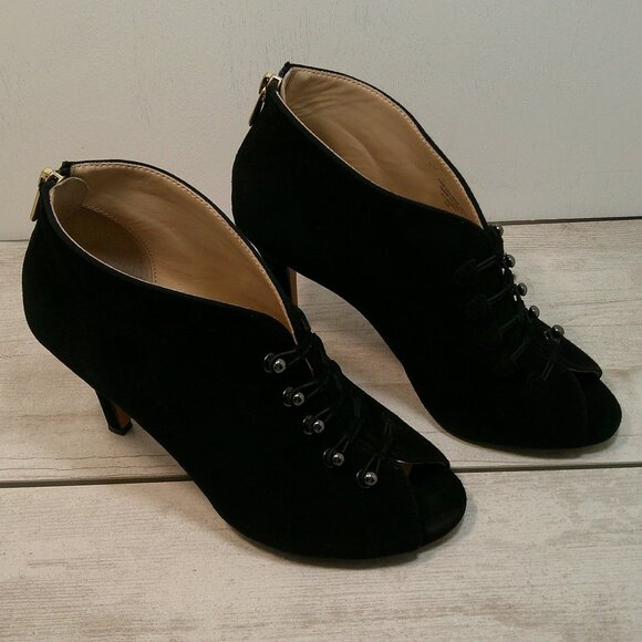 Womans Adrienne Vittadini Pumps Black Leather Suede Peep Toe Bootie Size 7.5M
