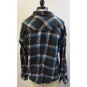 Womans Arizona Blue and Brown Plaid Shirt. Gently loved, lots of life left, says 1x but fits more like a large.