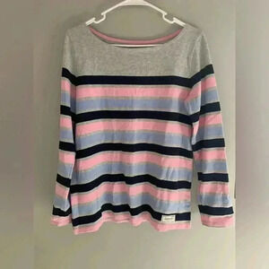 Woman’s Authentic Talbots Pink & Blue Striped Crew Neck Long Sleeve Sweater SzS