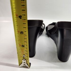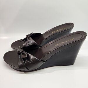 Woman's Bandolino Brown Wedge Open Toe Shoes Size 8.5M Bow Front
