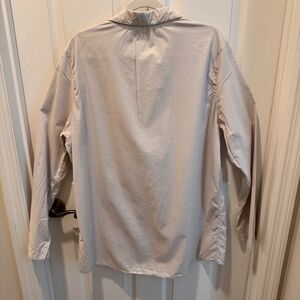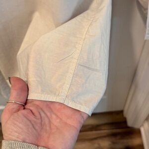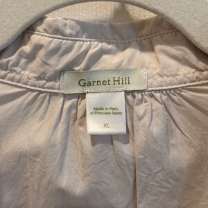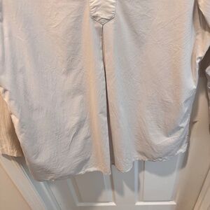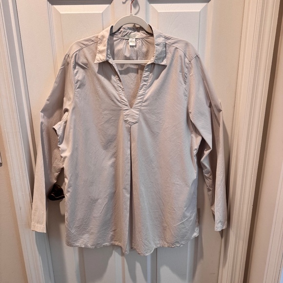 Garnet Hill woman's beige tunic. Size XL. Long sleeve, v neck with collar. 100% cotton. Machine wash delicate, tumble dry. Worn once. Condition is excellent. Light and airy. Measures 33" in length, 23 1/2" underarm to underarm.
