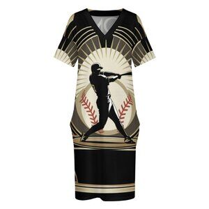 Woman's Black Baseball sports jersey Shirt Dress with pockets Size Medium 3X