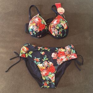 Woman’s Black Floral Plus Size Two Piece Tie Back Bikini Size XL NEW