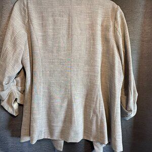 Women's Blazer, Size large, Tan checkered pattern. Gathered 3/4 Sleeves, Many different colors of tan to go with any color combination. Purchased at Nordtrom.