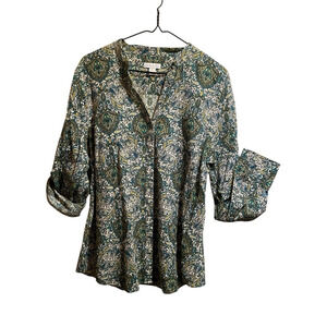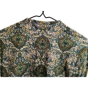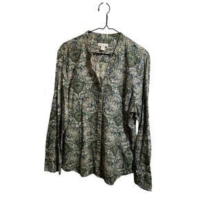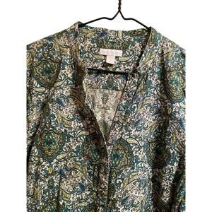 Woman's Blouse Size 16 Charter Club Green Tones Paisley V-Neck Mandarin Collar