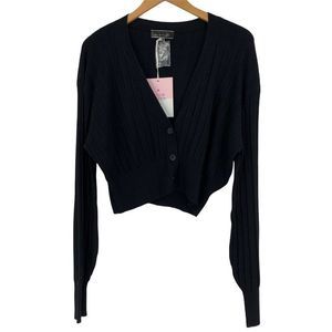 Womans Blue Blush Crop Sweater Cardi Black Size Large 0262 NWT Long Sleeve