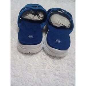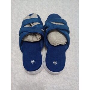 Woman's Blue Navy Cross Strap Slip On Sandals Sz 10W