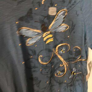 Catherine woman's top V neckline, short sleeves Blue with bees trimmed in gold size 14/16 NWT $26.50