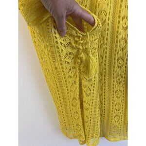 Womans Boho Yellow Crocheted Coverup Beach Vacation Layered Look Hippie Size Med