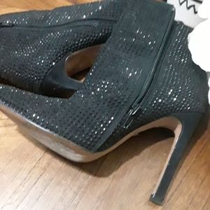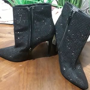 WITH HIGH HEELS,ZIP UPS POINTED TOE,EVENINGWEAR,OR DRESS UP CASUAL CLOTHES.BEAUTIFUL BLACK STONES THAT SHINES EVERY ANGLE US 6/1\2 Eur 37