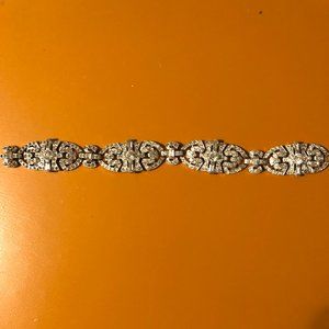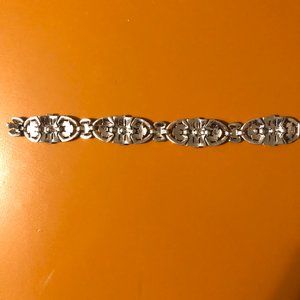 Silver Tone Link Bracelet, Length 7", 4 Large Links, 3 Small Links, 1 White Center Stone on Large Link, and small Link surrounded by several small stones (to many to count), Excellent Condition, NWOT, Costume Jewelry