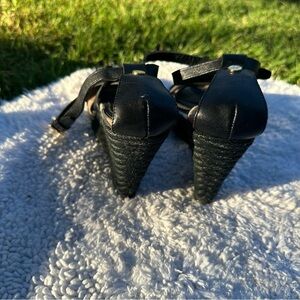 Woman’s Burberry Leather Ankle Strap Wedged Heels Leather & Plaid Size 36 (6)