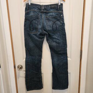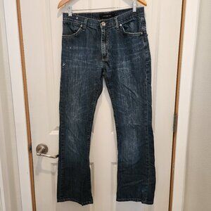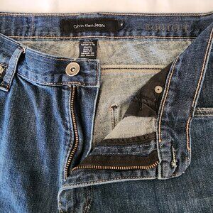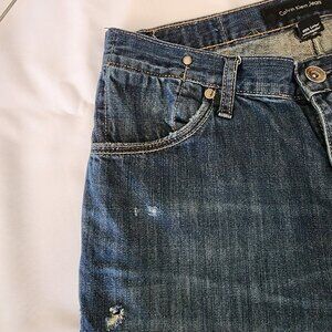 Woman's Calvin Klein Distressed Bootcut Blue Jeans, Size 31