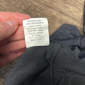 Elegant black one-piece swimsuit with a halter neck design. Perfect for a stylish beach day. Caribbean Sand size 8 swimsuit.