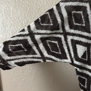 This is lightweight and perfect for all seasons. It is an excellent condition. The tag is coming off as shown on one end.
