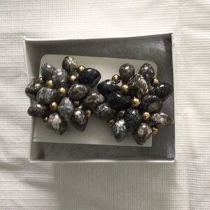 Woman’s Clip on Earrings color black gray and gold beads.