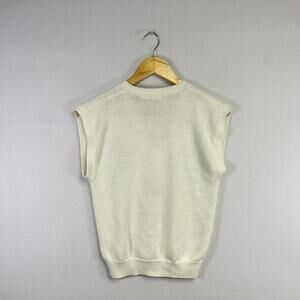 Woman's Cream Pullover Sweater Vest - Size Petite Small Academia Preppy