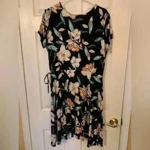 Woman’s Decree Black Floral Dress Short sleeved Knee length Size xl The style is similar to a wrap dress. Smoke free home