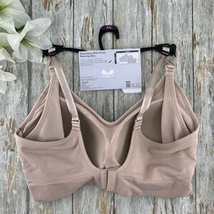 Just what the nursing mom needs for her new intimates’ wardrobe. Destination Maternity's nursing bra allows for easy accessibility and all-day comfort. With adjustable straps, 4-way stretch fabric and molded sewn-in cups that are leak-free, you can take care of your little one with confidence. No need for tugging or adjusting with the wire-free design and hook and eye closure.