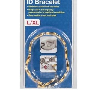 Women's magnetic diabetic medical ID bracelet. Stainless steel link design. Helps alert emergency personnel. Free wallet card included. ❤️ yourself and ❤️ your family by protecting an irreplaceable life Stainless steel link bracelet • Helps alert emergency personnel of a medical condition • Free wallet card included This product is marked with the caduceus symbol to help alert emergency personnel to a medical condition. The trendy bracelet has the words "diabetes" and "see wallet card" laser marked on the back. It also contains a wallet card for you to fill out with your personal medical information. Made in CHINA 100% satisfaction guaranteed Place wrist on bracelet size chart shown on package with palm turned up. This bracelet fits up to 8". Magnetic products should not be worn next to a watch as the magnets may drain the battery.